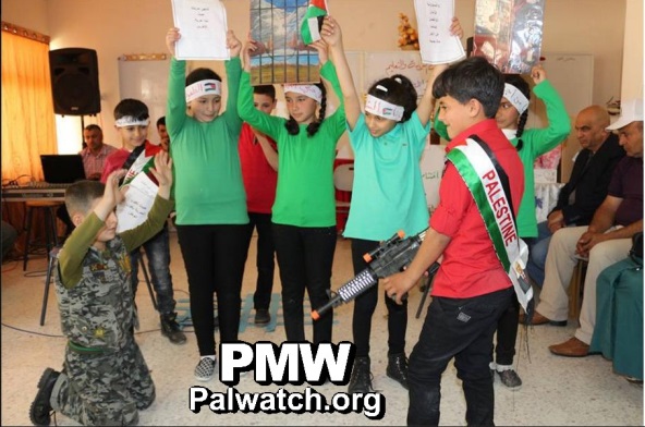 Young Palestinian children “executed” an Israeli soldier in a play at an art exhibition at the Al-Surra Elementary School for Boys and Girls, which is under the Hebron Education Directorate under the PA Ministry of Education. A photo from the exhibition posted on the school's Facebook page shows a...