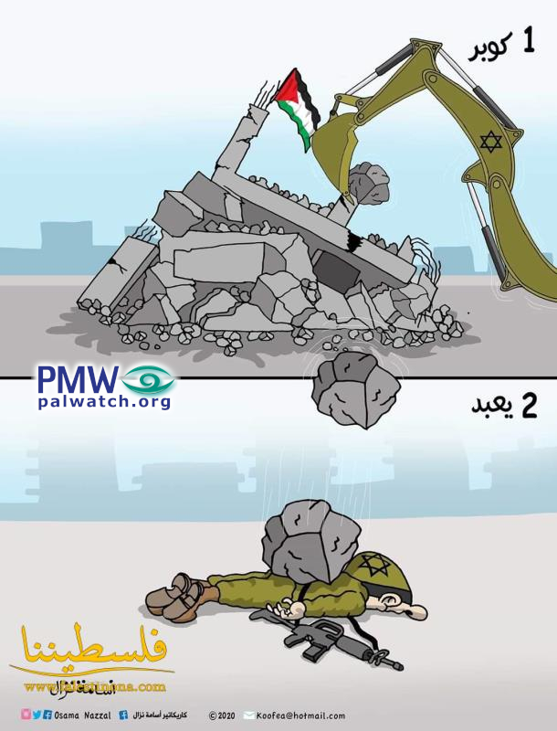 Fatah cartoon justifies murder of soldier citing demolition of a terrorist’s houseCartoon on Fatah website shows Israel demolishing the house of a terrorist murderer, and a rock from the demolition falling and killing a soldier in reference to a soldier who was killed by a rockMay 13, 2020