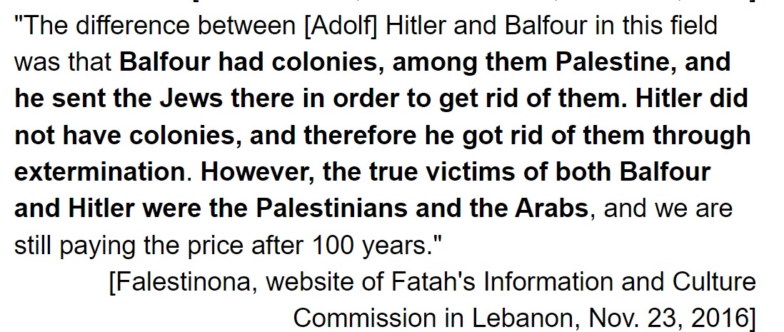 Palestinian Authority to children: Balfour Declaration was “Satan’s promise” Fatah to kids: Palestinians will “liberate Palestine and nullify all that has happened as a result of the Balfour Declaration.”Nov 18, 2024
