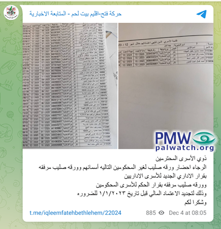 Director of the PLO Commission of Prisoners' Affairs Raed Abu Al-Humus: "The war of annihilation against the Gaza Strip (i.e., Israel's response to Hamas' Oct. 7 war) has from its start been accompanied by a quiet annihilation inside the prisons and a systematic policy, which the Israeli Prison..."