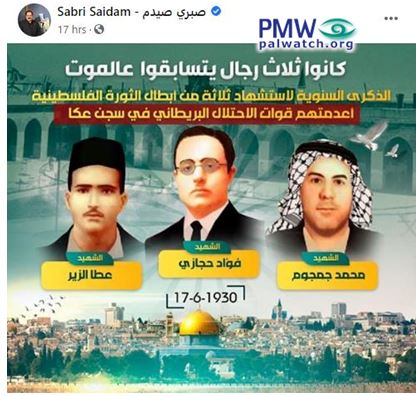 Palestinian Authority Minister Sabri Saidam praises brutal terrorist murderers as "heroes of the Palestinian revolution"Saidam boasts "The three men competed among themselves who would die first as martyrs" when executed for their barbaric mass murdersJun 17, 2020