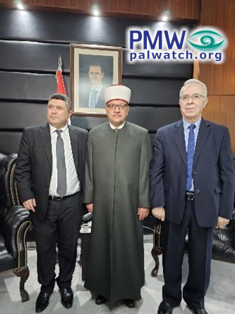 News flash on screen: "The [PA Ministry of] Religious Affairs condemns the invasion of the Al-Aqsa Mosque by [Israeli Minister of National Security Itamar] Ben Gvir and describes this as a defilement of the Islamic holy sites." [Official PA TV News, April 3, 2025; PA Ministry of Religious Affairs,...
