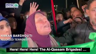 The video shows statements made by terrorist Hanan Barghouti shortly after her release from prison, as part of a ceasefire and prisoner exchange deal between Israel and Hamas during the Israeli counter-terror operation against Hamas’ terror war on Israel – see note below. Released terrorist Hanan...