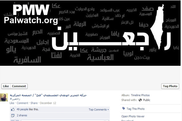 Text and image posted on Fatah’s Facebook page, “Fatah – The Main Page”