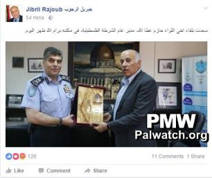 Images and text posted on the Facebook page of Fatah Central Committee Secretary Jibril Rajoub Posted text: “[Fatah Central Committee Secretary and Chairman of the Palestine Olympic Committee] Jibril Rajoub during his visit to the headquarters of the delegations of Algeria, Tunisia, and Turkey this...”