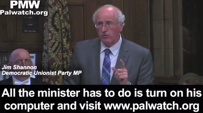 - British MP Jim Shannon: "All the Minister has to do is turn on his computer and visit www.palwatch.org [PMW website] and see for himself"
