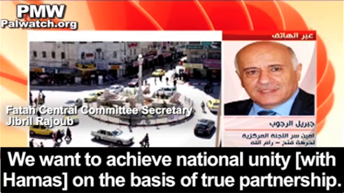 Rajoub explained in an interview on the Lebanese TV channel Al-Mayadeen that Fatah wants to achieve "national unity" based on "true partnership" with Hamas: