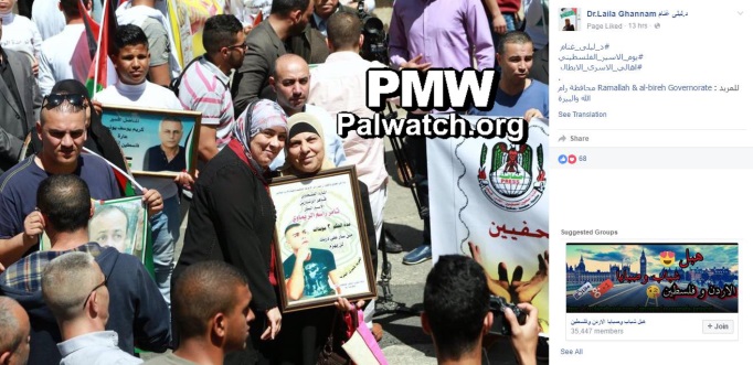 Text and photo posted on the Facebook page of Ramallah and El-Bireh District Governor Laila Ghannam shows governor honoring terrorist murderer’s mother