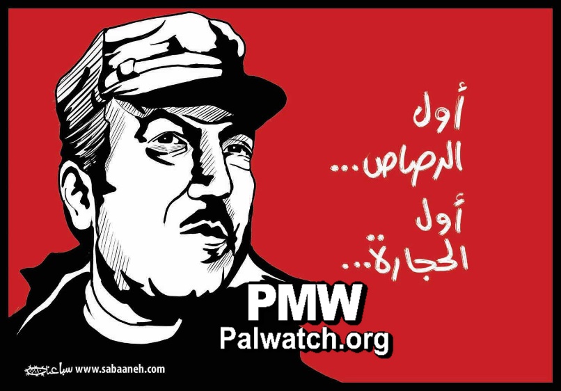 Palestinian Authority daily publishes cartoon drawing of terrorist Abu Jihad with the words: "The first bulletin, the first stone"
