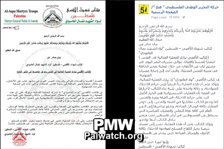 Fatah chose to respond to the news of the attack with words of praise and celebration. Fatah posted on its official Facebook page an announcement from a division of its military wing, the Al-Aqsa Martyrs’ Brigades, in the Gaza Strip. In the announcement, the Brigades “bless” the attack, referring to it as “good news of victory,” and praising the fact that “dozens of Zionists were injured”: