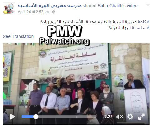 Text and video posted on the Facebook page of the Mughtaribi El-Bireh Elementary School on April 24, 2016.