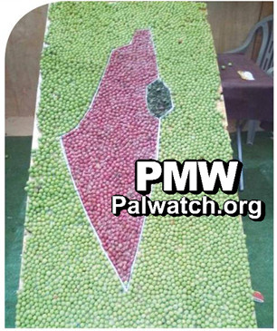 The picture shows the PA map of “Palestine” that includes all of the PA areas as well as Israel made of fruit. The same map was also posted on the official Fatah Facebook page on the same day.