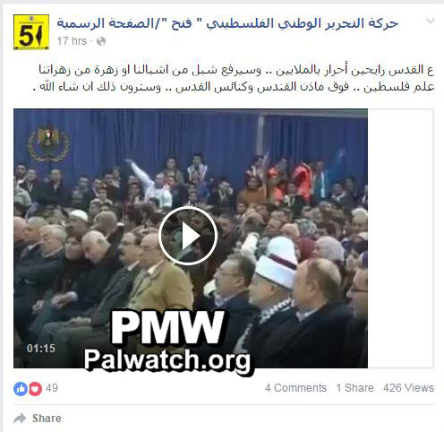 Fatah posts video of Abbas promoting Martyrdom from 2014, implies Israel’s destruction