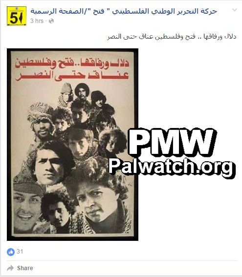 Fatah Facebook posts picture of Dalal Mughrabi with her fellow terrorists, who together killed 37 Israelis