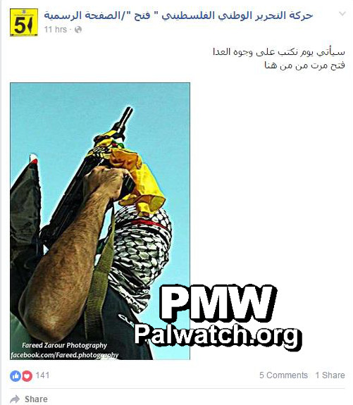 Text and photo posted on the official Fatah Facebook page on May 3, 2016