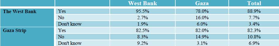 Note: “In a new Arab World for Research and Development (AWRAD) poll, conducted April 18-21, 2016, in the West Bank and Gaza Strip, 1200 adult Palestinians were surveyed.”