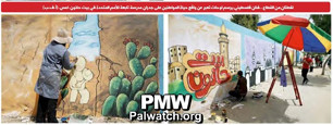 The picture on the left shows the artist drawing the PA map of “Palestine” that presents all of Israel as “Palestine” together with the PA areas.
