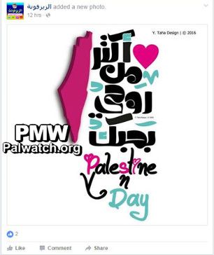 The image shows the PA map of “Palestine” that presents all of Israel as "Palestine" together with the PA areas to the right of text.
