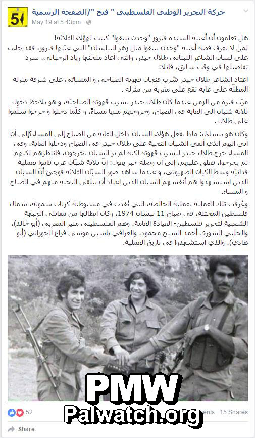 Official Fatah Facebook praises 3 murderers who killed 18 Israelis in 1974