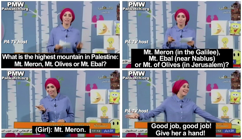 PA TV host: "What is the highest mountain in Palestine: Mt. Meron, Mt. Olives or Mt. Ebal?"