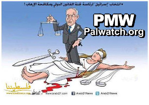 Fatah cartoon shows Israeli Prime Minister Benjamin Netanyahu having murdered ‘Lady Justice’