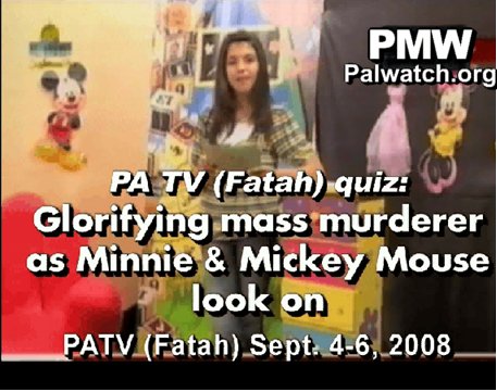 Palestinian Authority TV quiz glorifies terrorist beside Mickey Mouse