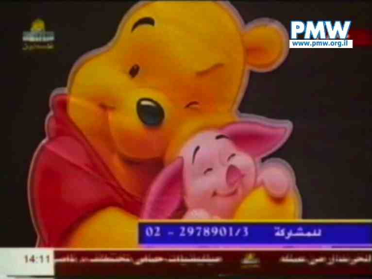 InMay 2007, PMW reported that the Hamas TV network was using aMickey Mouse character to teach children to seek world Islamic domination.The widespread international outrage prompted Al-Aqsa TV to get rid of the character (they showed him being beaten to death by an Israeli officer) and replace him with another animal host.