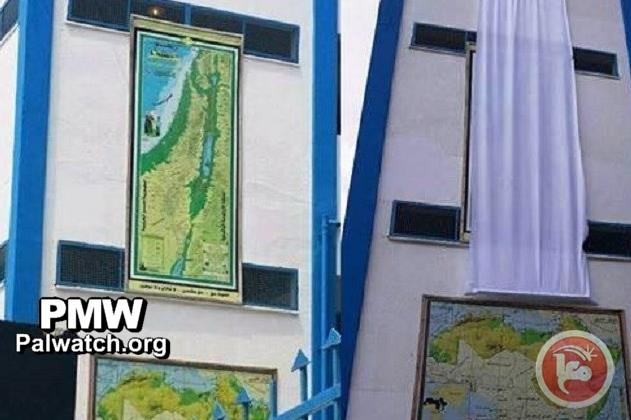 “The United Nations Relief and Works Agency for Palestine Refugees in the Near East (UNRWA) covered the map of Palestine (the PA map that presents all of Israel as part of ‘Palestine’ -Ed.) on the walls of the Al-Zeitoun School while [UN Secretary-General] Ban Ki-moon was at the school, in which he held a press conference. The matter aroused the anger of Gaza residents.