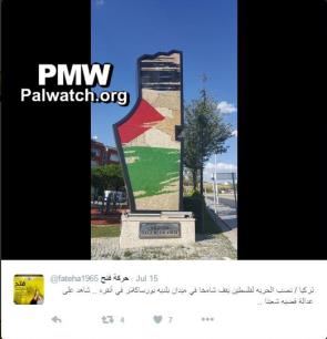 Fatah tweets pic of Turkish monument of Palestine replacing Israel