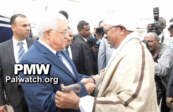 Headline: “In Khartoum for an official three-day visit – [PA] President [Mahmoud Abbas]: We express solidarity with sister [nation] Sudan in light of the unjust sanctions”