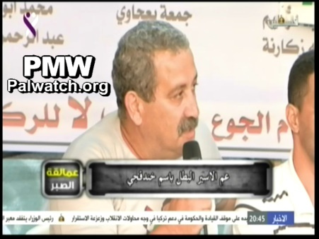 Text on screen: “Uncle of heroic prisoner Bassem Al-Khandaqji”
