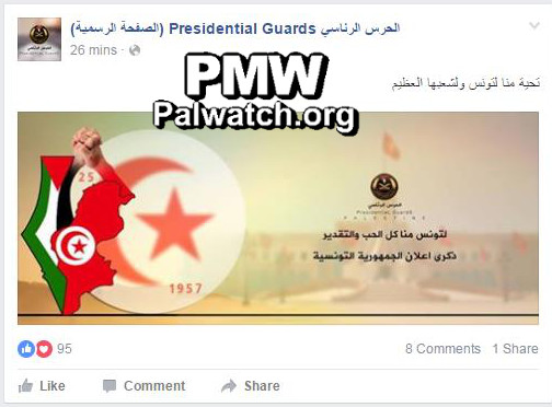 Palestinian Authority Presidential Guards post map of “Palestine” erasing Israel greeting Tunisia