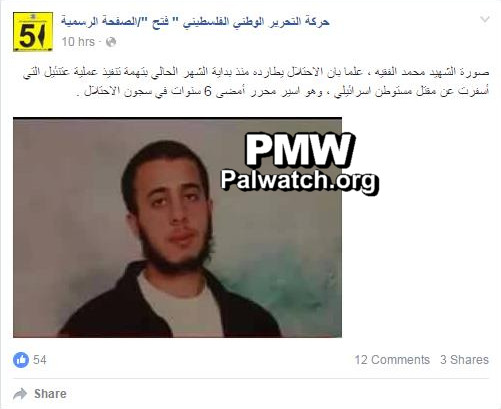 Fatah Facebook calls terrorist who murdered Israeli civilian a “Martyr”