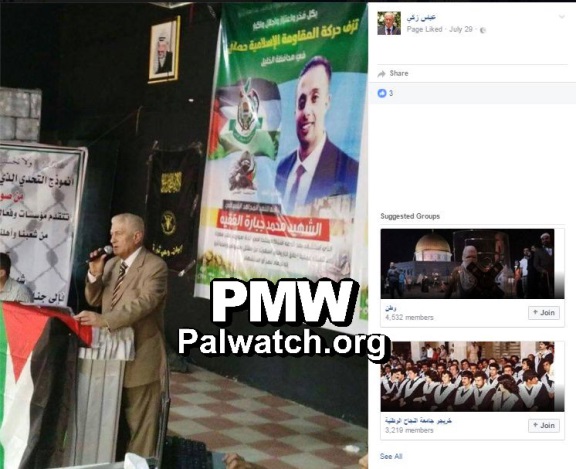 Fatah official participates in “Martyrdom celebrations” with family of “heroic” terrorist who murdered Israeli civilian