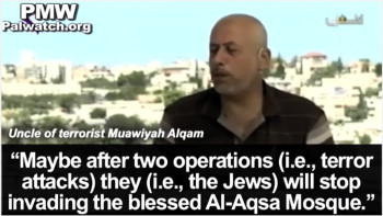 Uncle of terrorist Muawiyah Alqam: "He always asks me about the blessed Al-Aqsa Mosque. He said plainly and with a good deal of innocence: ''Maybe after two operations (i.e., terror attacks) they (i.e., Jews) will stop invading the blessed Al-Aqsa Mosque.''