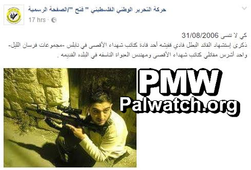 Terrorist behind dozens of attacks glorified on Fatah’s official Facebook page as “the heroic commander… fierce fighter”