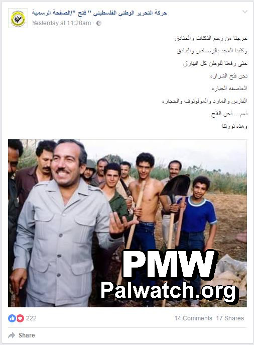 Image and text posted on the official Fatah Facebook page