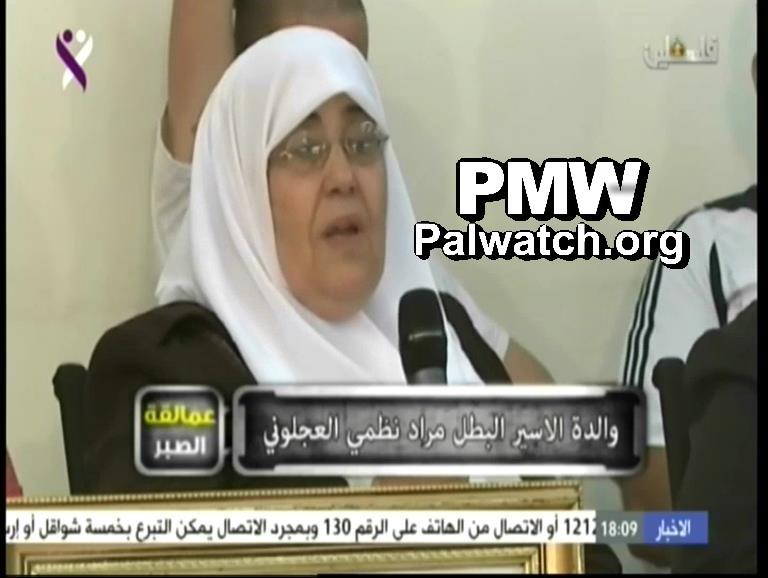 Screenshot shows the mother of terrorist prisoner Murad Al-Ajlouni.
