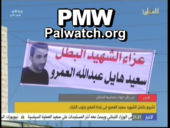 Text on news headline accompanying the report onscreen: “Jordan: Funeral of Martyr Sa’id Al-Amru in the town of Al-Mazar south of Al-Karak, in the shadow of calls to demand accountability of the occupation.”