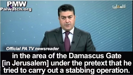 Official PA TV newsreader: "The occupation executes three residents (i.e., terrorists who carried out stabbing and car ramming attack) of occupied Jerusalem and Hebron, and the [PA] presidential office calls for urgent international involvement."