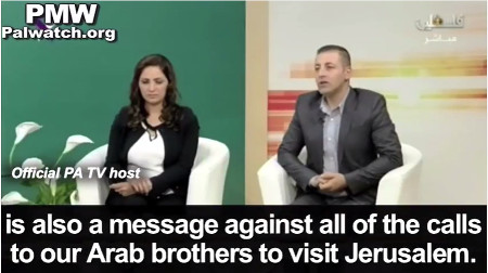 Official PA TV host: "The targeting of Jordanian Martyr Sa'id Al-Amru (i.e., terrorist stabber) is also a message against all of the calls to our Arab brothers to visit Jerusalem. [It is] an attempt to reduce these visits and in a sense prevent them, so that the Arabs will not defend Jerusalem and Palestine and the besieged Palestinian people that lives under the occupation."