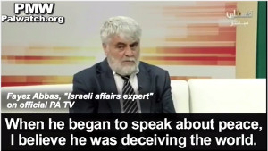 The following are the words of official PA TV's "Israeli affairs expert" Fayez Abbas, the day of the death of former Israeli President Shimon Peres: