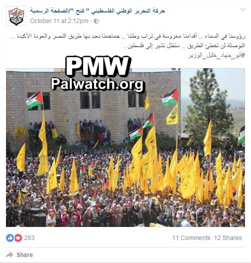 Fatah FB quotes arch-terrorist: "With our skulls we are paving the certain path to victory"