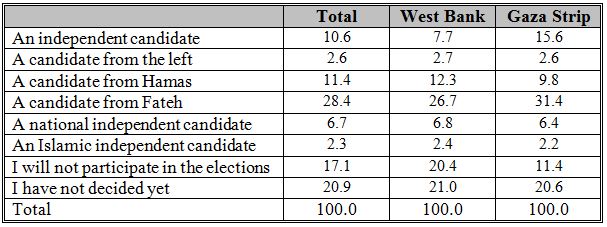 Q: "If presidential elections are held at the present time, to whom from among the following do you give your vote?"