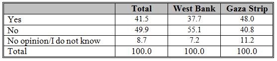 Note: “Results of the Palestinian Public Opinion Poll no. 53 conducted by the Center for Opinion Polls and Survey Studies at An-Najah National University during the period from 13-15 October 2016. The University sponsors all polls conducted by its Center… The sample included 1362 persons... The sample was drawn randomly and the margin of error is about ±3%."