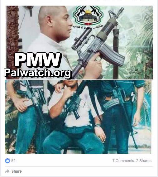 Fatah included photos of terrorist Turkeman in posts that praised him for carrying out the "shooting operation”. In one he poses with an assault rifle, and in another he is shown wearing his PA Police uniform with a Kalashnikov assault rifle next to him.