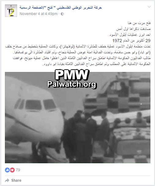 Fatah Facebook post celebrates "outstanding" airplane hijacking