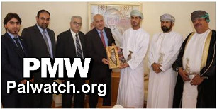 The picture shows Deputy Secretary of the Fatah Central Committee and Head of the PLO Supreme Council for Sport and Youth Affairs Jibril Rajoub and Oman Minister of Sport Affairs Sa'ad Bin Mohammed Al-Sa'adi holding a plaque of honor featuring the PA map of “Palestine" that presents all of Israel as "Palestine" together with the PA areas.
