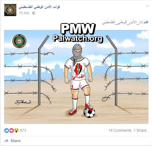Palestinian Authority National Security Forces post image of Palestinian football player wearing map of “Palestine”