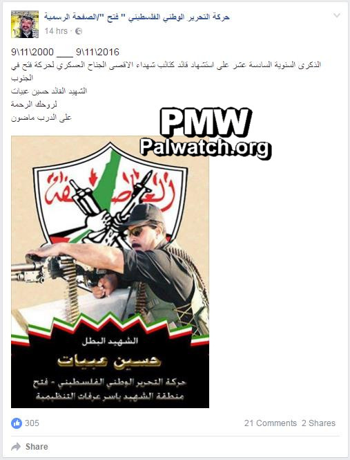 Fatah FB posts photo of "heroic Martyr" aiming machine gun